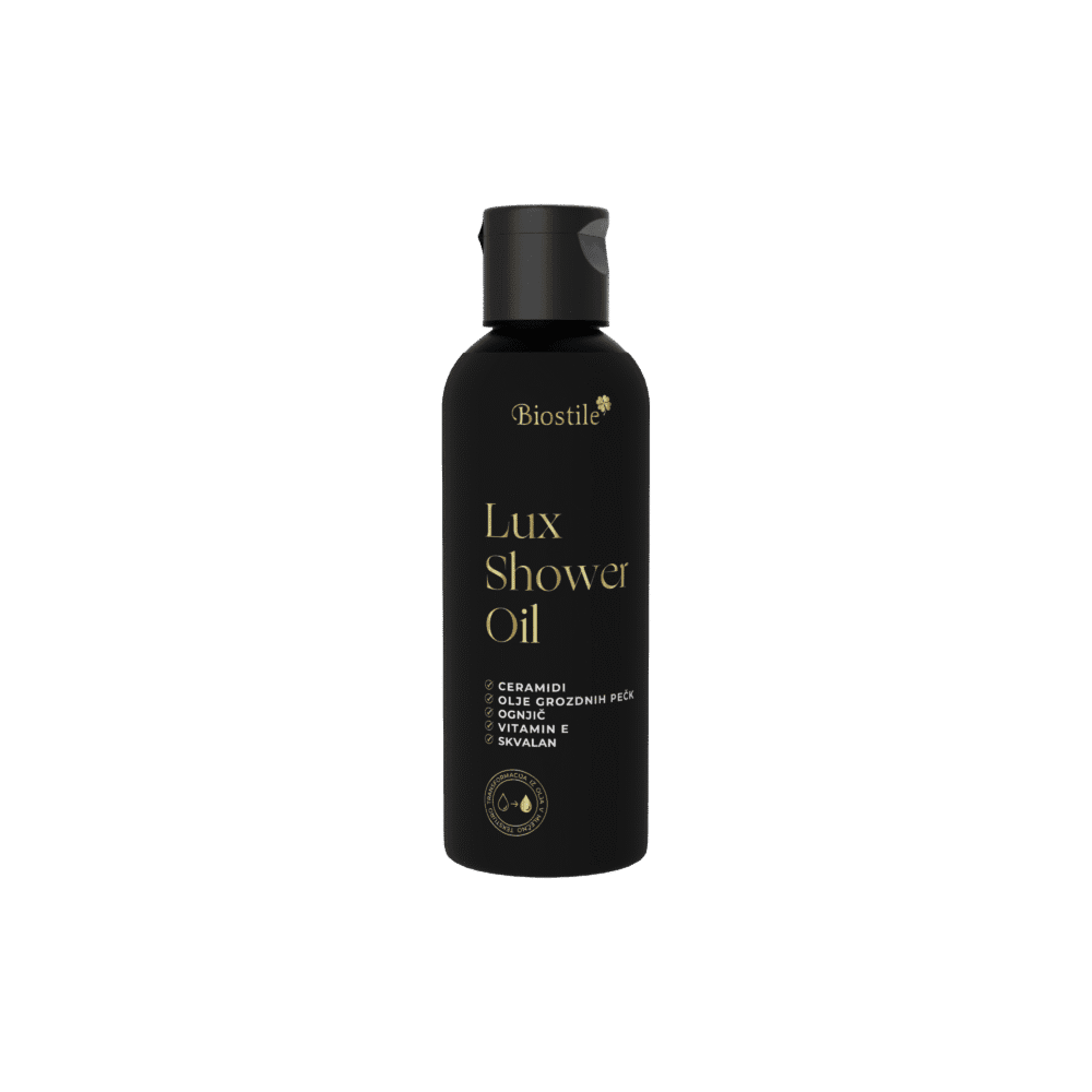 Lux Shower Oil s ceramidi in oljem grozdnih pešk je razkošen oljni gel za tuširanje, zasnovan za nežno čiščenje in intenzivno nego kože. Njegova svilnata tekstura se ob stiku z vodo spremeni v nežno mlečno emulzijo, ki kožo očisti brez izsuševanja in jo pusti mehko, gladko ter prijetno navlaženo.
